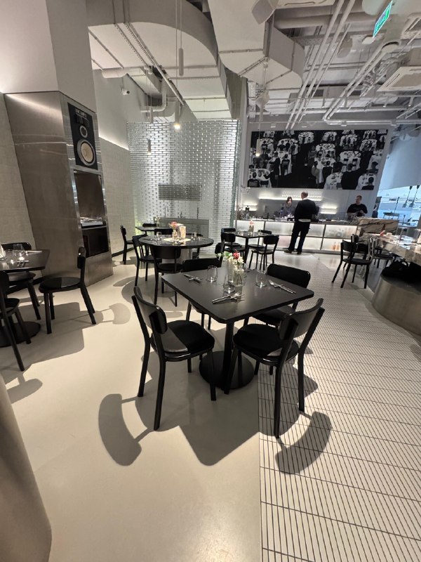 Летом мы выполняли здесь устройство полов — важную основу пространства, которая должна быть не только красивой, но и максимально практичной для ресторанного формата.