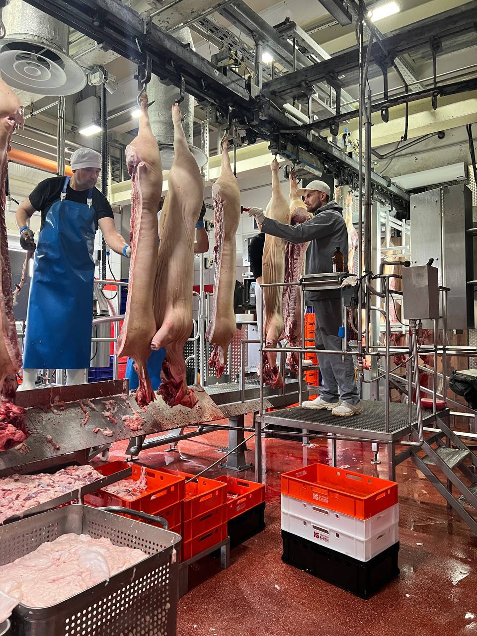 Чаще всего красное покрытие можно встретить: - в зоне приёмки сырья; - на участке первичной переработки; - в «грязных» технологических зонах; - в местах интенсивного контакта с кровью и органикой; - в цехе убоя и обвалки.
