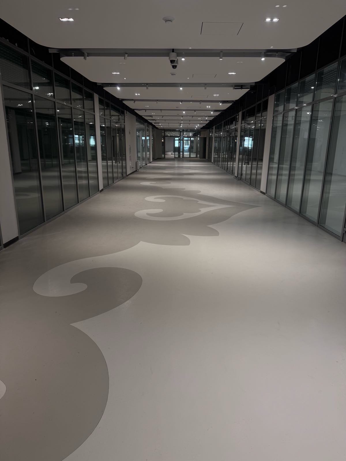 Пол здесь — не фон. Он полноценный участник пространства, который усиливает архитектурную идею и связывает все элементы воедино.
