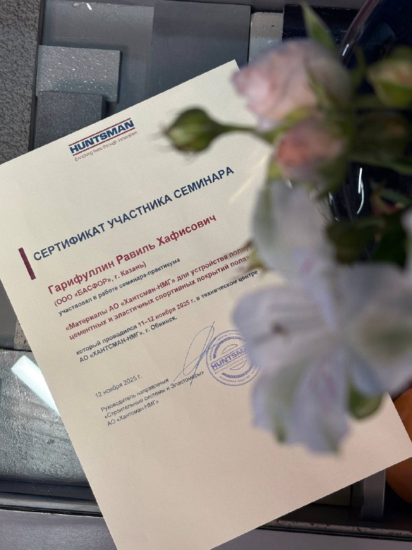 Команда Басфор прошла профессиональное обучение от компании HUNTSMAN, где подробно изучила современные решения в сфере спортивных напольных покрытий. Специалисты получили ценные знания и готовы делиться ими с клиентами, помогая подобрать оптимальное покрытие под любые задачи.